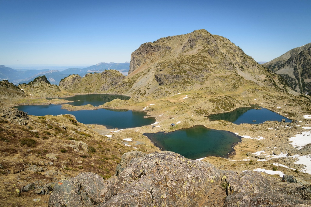 En poursuivant un peu plus haut, on atteint les lacs Robert, perchés dans un décor minéral. J’ai beaucoup aimé cette randonnée, elle offre des vues splendides tout au long du chemin. À l’arrivée, un superbe panorama vous attend sur les lacs et les sommets de Belledonne.