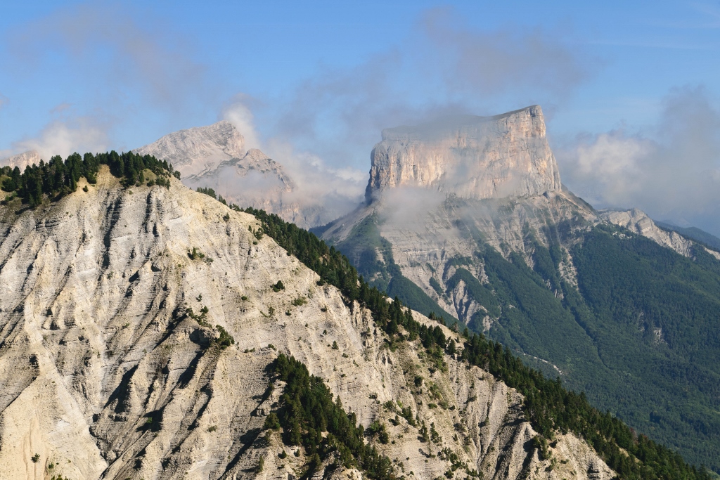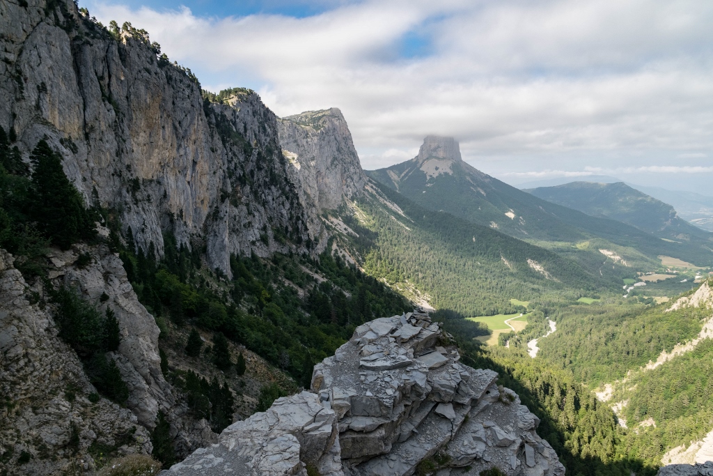 Le Pas de l’Aiguille est une randonnée emblématique du Vercors sud, à la fois grandiose et historique. Depuis le parking de la Richardière, le chemin grimpe vite à travers bois avant d’atteindre la célèbre bergerie du Pas de l’Aiguille, lieu de mémoire de la Résistance. Le panorama sur le Mont Aiguille, monolithe spectaculaire, est à couper le souffle.