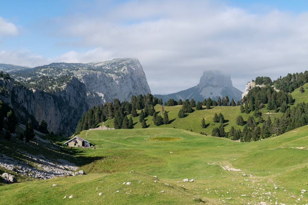 L’itinéraire traverse de magnifiques alpages, des forêts de pins et offre une vue spectaculaire sur le Mont Aiguille. Parfaite pour une randonnée à la journée depuis Grenoble, le vallon de Combeau offre un paysage typique des hauts plateaux du Vercors.